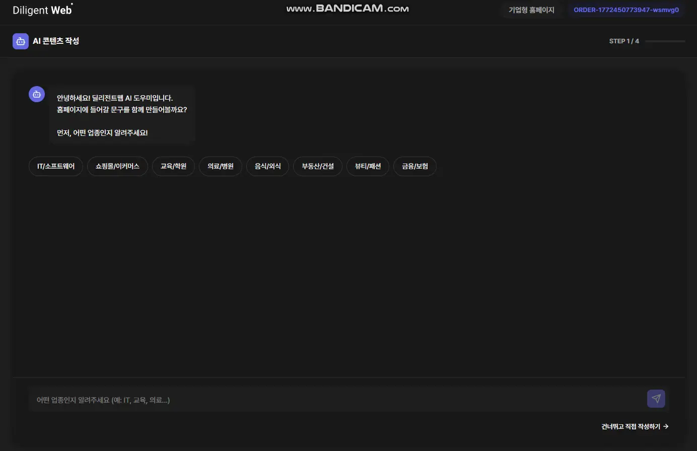 여러분의 브랜드 컨셉만 전달해 주세요. AI가 여러분의 홈페이지 완성을 도와드립니다.
